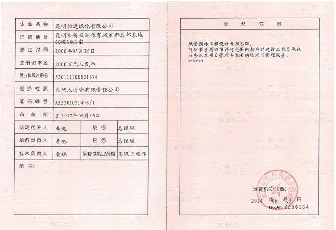 目前擁有市政工程施工總承包二級、水利水電工程施工總承包三級、古建筑工程專(zhuān)業(yè)承包三級、環(huán)保工程專(zhuān)業(yè)承包三級、城市園林綠化施工二級、風(fēng)景園林設計乙級資質(zhì)。是專(zhuān)門(mén)從事市政工程、水利工程、古建筑工程、公路工程、環(huán)保工程、園林景觀(guān)工程設計及施工等綜合性建筑企業(yè)。