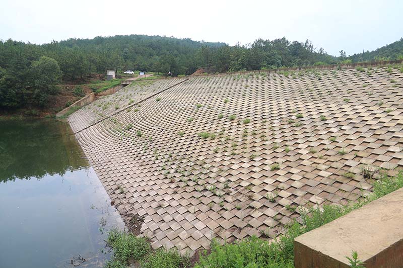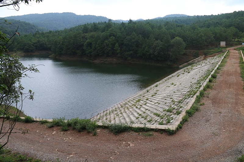 建設規模( ㎡ ):水庫總庫容36.22萬(wàn)m3,為?。?)型水庫,工程等別為V等,建筑物級別為5級,地震設防烈度為8度。壩頂按2027.00m恢復,壩頂寬4.0m,在上、下游設30cm寬的C15砼路緣石,路緣石頂高程為2027.20m。上游壩坡按1:2.3、1:3.25整形,采用砼預制塊護坡;下游壩坡2018.00m以上按1:2.3整形填補,在2018.00m設2m戧臺,戧臺以下用風(fēng)化料培厚為1:2.5,坡腳設排水棱體,采用植草護坡。對大壩采用鉆孔灌漿進(jìn)行垂直防滲處理。涵洞內襯砌DN400mm鋼管,涵洞與涵管間沖洗干凈,用水泥漿充填。拆除進(jìn)口轉蓋閘(包括涵臥管),增設豎井式取水口,增設檢修閘、工作閘個(gè)一套,均為DN400mm蝶閥,并建閘門(mén)房,下游設泄槽及消力池。加固順流左岸已建溢洪道。新建水庫管理房50m2,并增設大壩觀(guān)測設施。